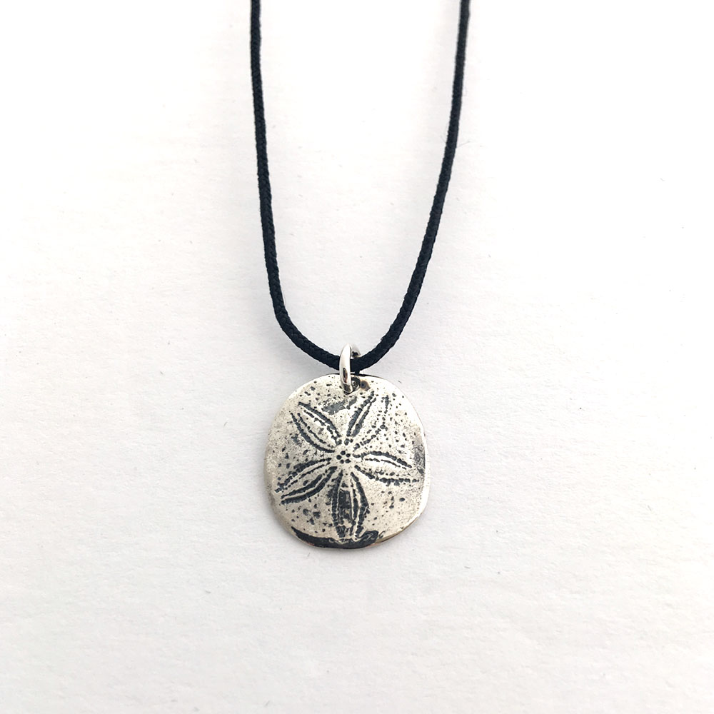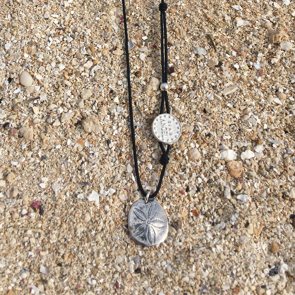 The necklace is inspired by the ocean and its shells. The Sand dollar is a small flat-shaped sea urchin with a 5-pointed star. The beauty that emerges from this little jewel is unique. Like a snowflake, the Sand Dollar contains a perfect geometry, it is a sublime creation of nature.