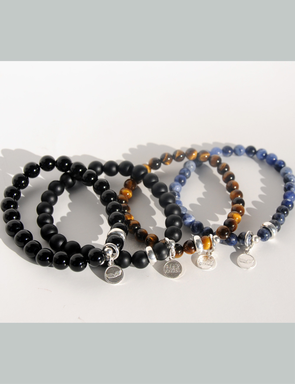 Bracelet de pierre gemme - onyx mate 8mm , Tag signature Ciao Angel et rondelle en argent 925