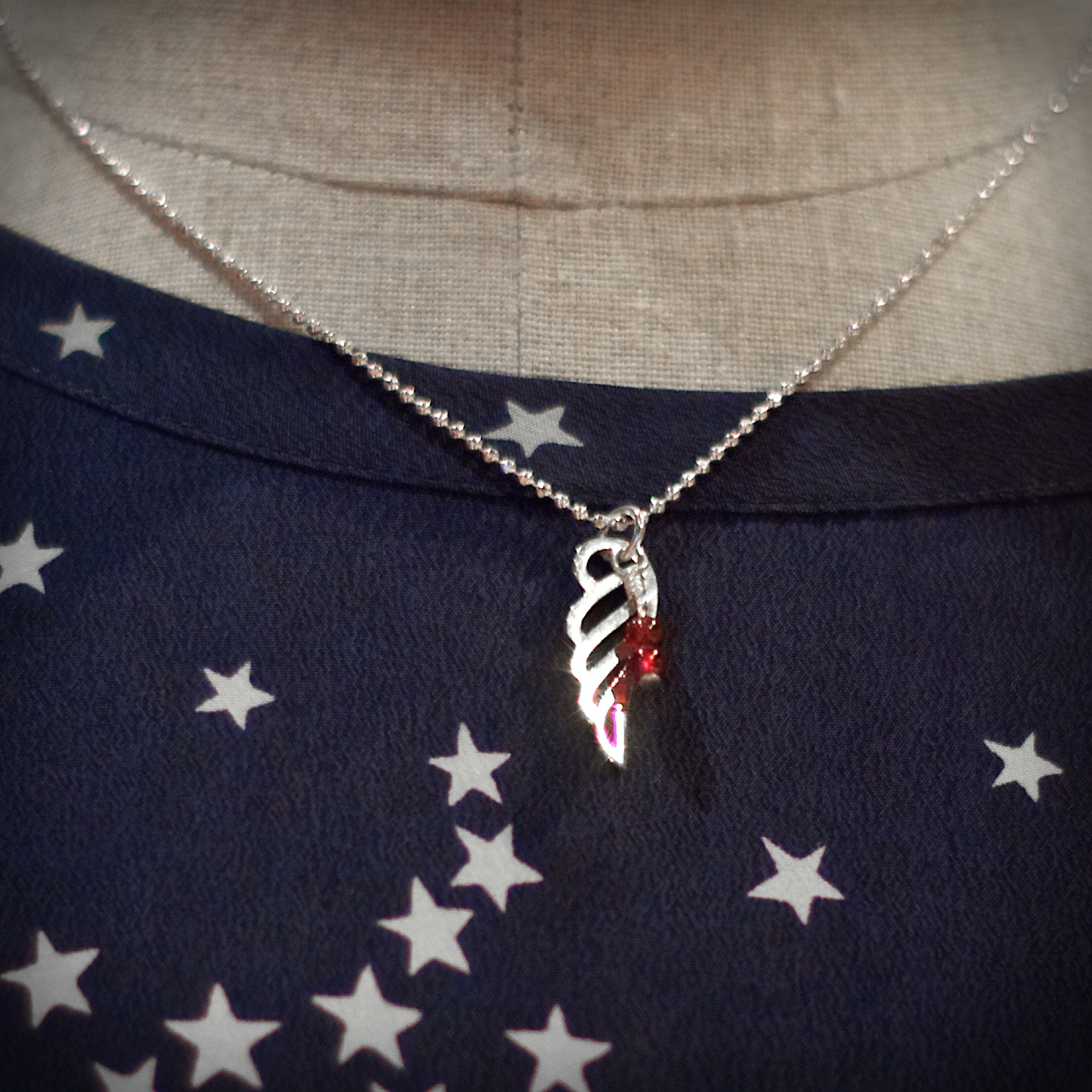 L'aile de Ciao Angel fait partie de la toute première collection Merci Angel. Elle est accompagnée de deux grenats. Le Grenat apporte et renforce le contact avec l’énergie vitale et la création.