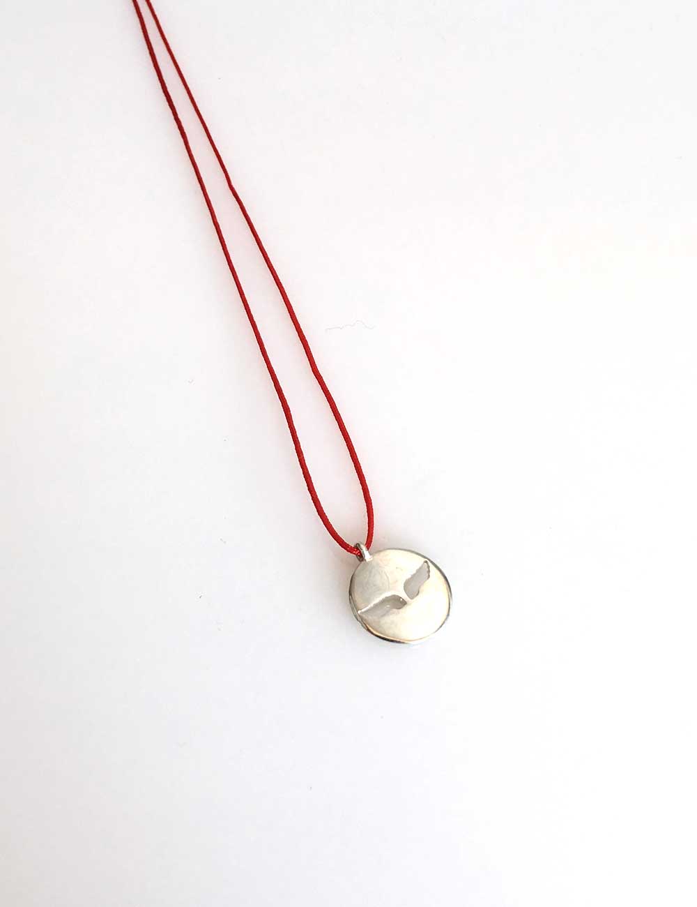 Cordon noir ou rouge. Pendentif aile Ciao Angel argent 925, billes 4mm argent 925.