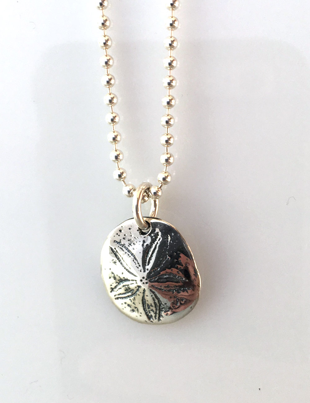Chaine boule (16") et pendentif Dollar des Sables en argent 925.